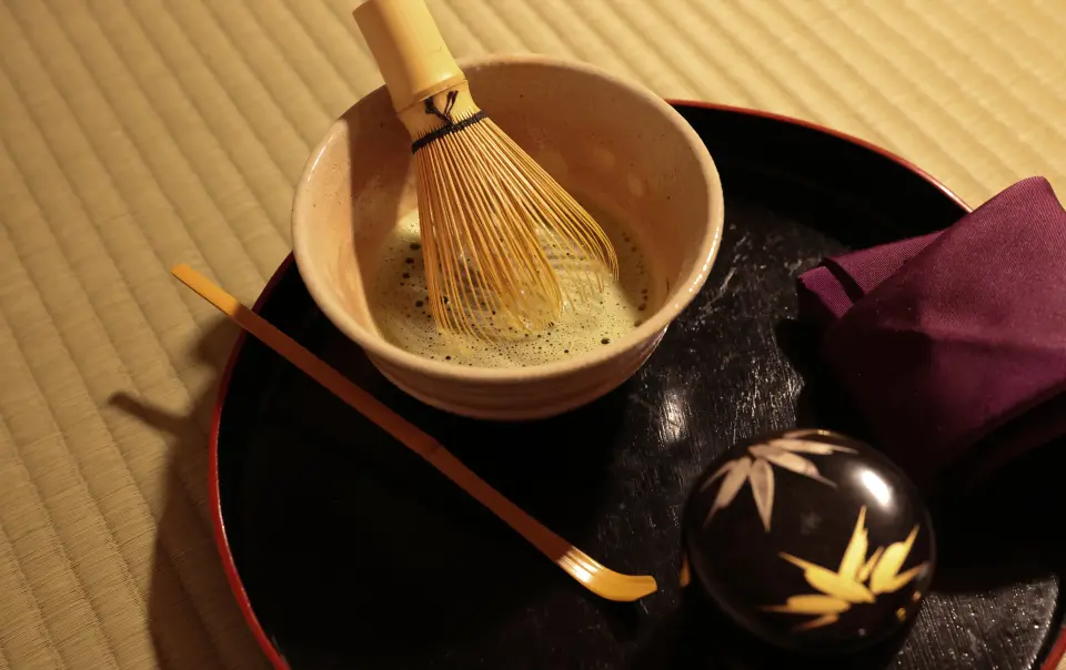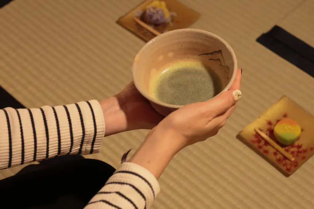 季節のお菓子とお抹茶を楽しむ体験です。本格的な作法や経験がない方でも、純粋にお茶を楽しむことができるようにご説明いたします。禅体験の導入として、心を静める時間として大切にしています。